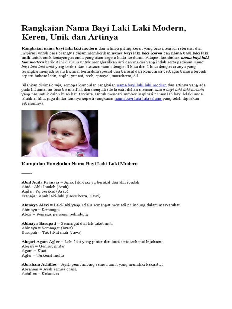 Rangkaian nama bayi laki laki islami modern dan artinya.